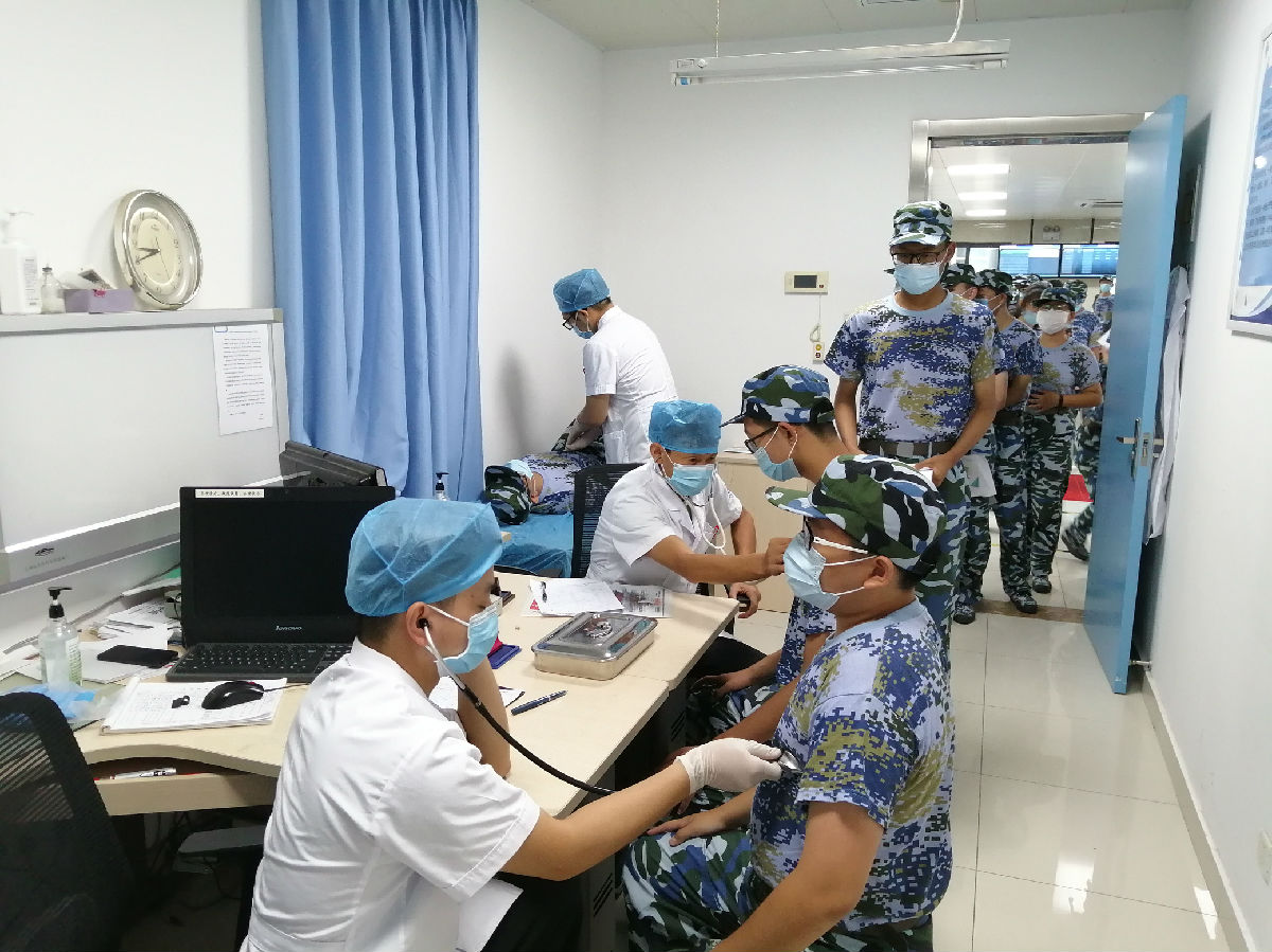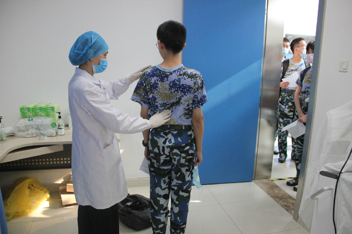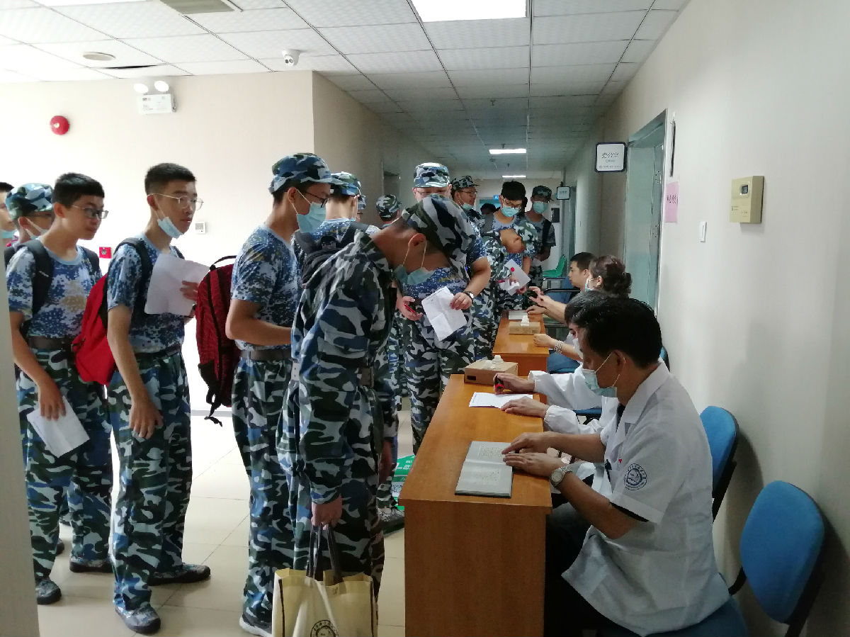 2020年9月11日上午,在校人武部和军训团的大力支持下,在我院各科室的密切合作下,校医院圆满完成了今年的本科新生体检工作。
