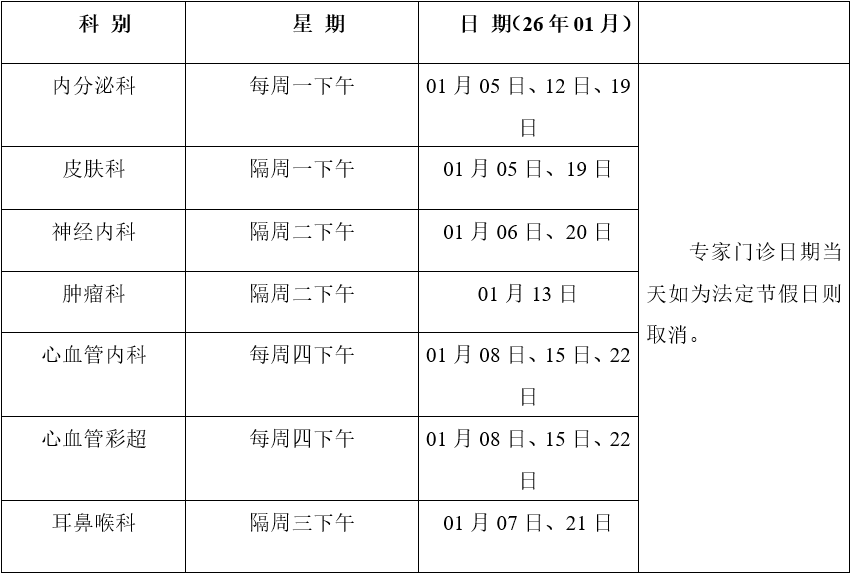 中国科学技术大学附属第一医院(安徽省立医院)专家2026年1月到校医院专家门诊时间