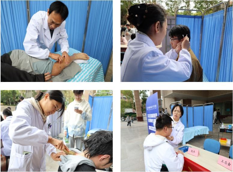在体验区,疼痛专家团队通过现场演示与专业讲解,生动展示了浮针、耳穴、刮痧等中医特色疗法;现场师生踊跃参与亲身体验,取得了明显的治疗效果,使师生切实感受到其在疼痛管理方面具有简、便、效、廉的独特优势;体验结束后,师生们纷纷主动咨询活动的后续治疗安排,充分体现出对中医特色疗法的浓厚兴趣与高度认可。
